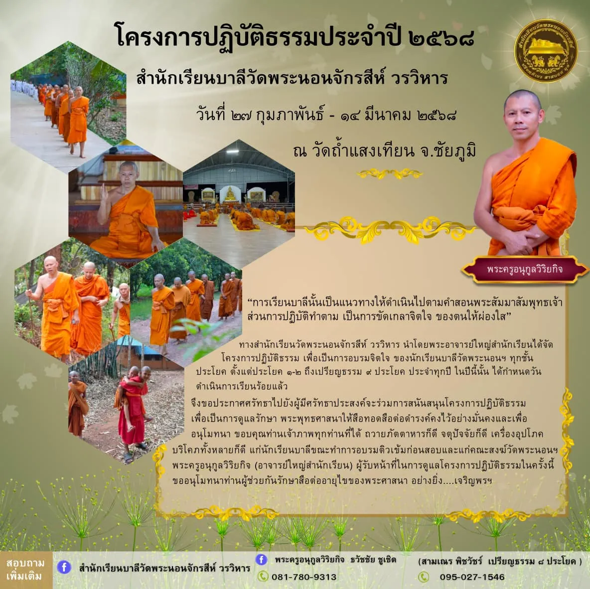 พระครูอนุกูลวิริยกิจ เบอร์โทร ๐๘๑ ๗๘๐ ๙๓๑๓